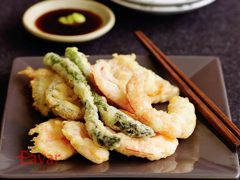 • تمپورا: سبزیجات و غذاهای دریایی سرخ‌شده با خمیر سبک.